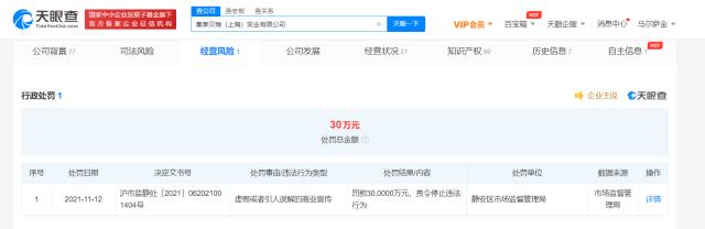 天眼查App顯示,近日,BELRAY貝瑞咖啡關(guān)聯(lián)公司集享貝瑞(上海)實業(yè)有限公司新增一則行政處罰信息,該公司因虛假或者引人誤解的商業(yè)宣傳,被靜安區(qū)市場監(jiān)督管理局罰款30萬元并責(zé)令停止違法行為。